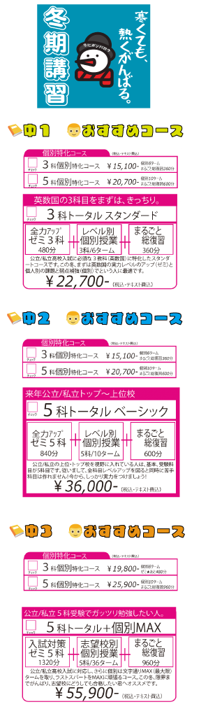 ① 冬期講習 10%オフ