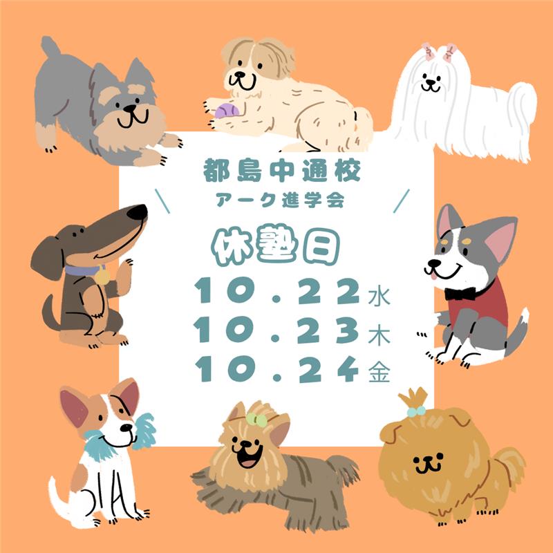 2025年10月10日 / 最終更新日時 : 2025年10月10日 arcedu 都島中通校BLOG 10月休塾日 10月の休塾日は22日(水)、23日(木)、24日(金)となります。13日(月)は通常通り開校しております。